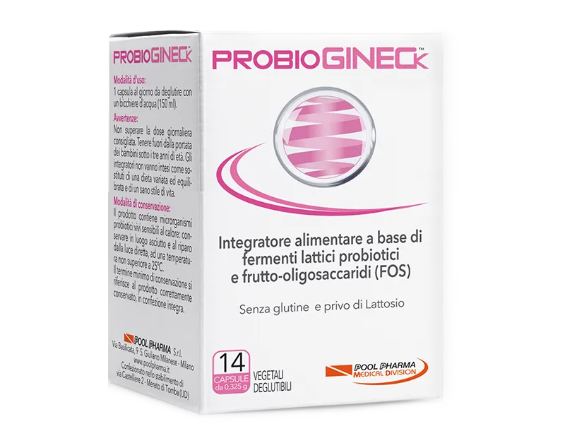 PROBIOGINECK è disponibile in confezione da 14 capsule deglutibili vegetali, senza Glutine e prive di Lattosio.